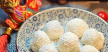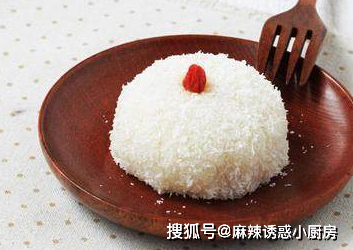7.蘸上椰蓉即可食用,上面擺上枸杞子做裝飾3制作提示