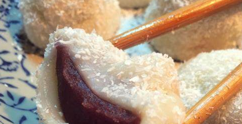 食材:糯米粉150克、玉米淀粉50克、牛奶250克、植物油15克、椰蓉、紅豆沙