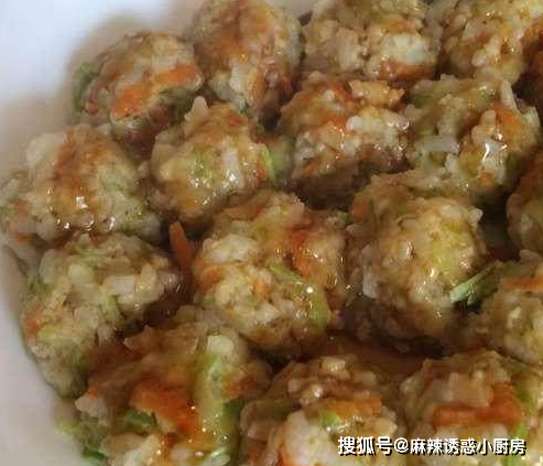 加米飯,帶上食物手套揉成團子,上鍋大火蒸12分鐘