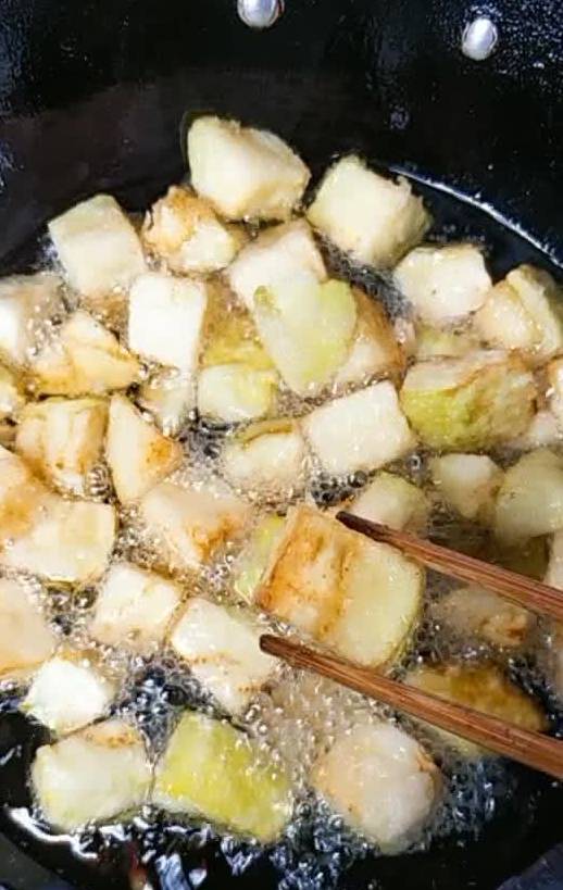 2、炸茄子油溫很重要,太高或者太低都不行,前者容易炸焦,後者又太軟,控制在5-6成最為合適,請大傢制作時要特別的註意。