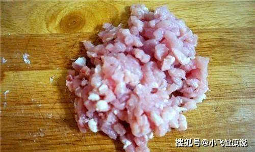 第一步:先將肉洗幾遍後撈出,然後將肉切成小塊,然後磨碎放入碗中待用。然後可以在肉裡加少許生抽、生抽、鹽和油一起醃制,會更入味。喜歡吃原味的可以不放。將肉醃制5-10分鐘。