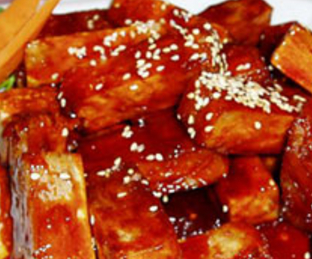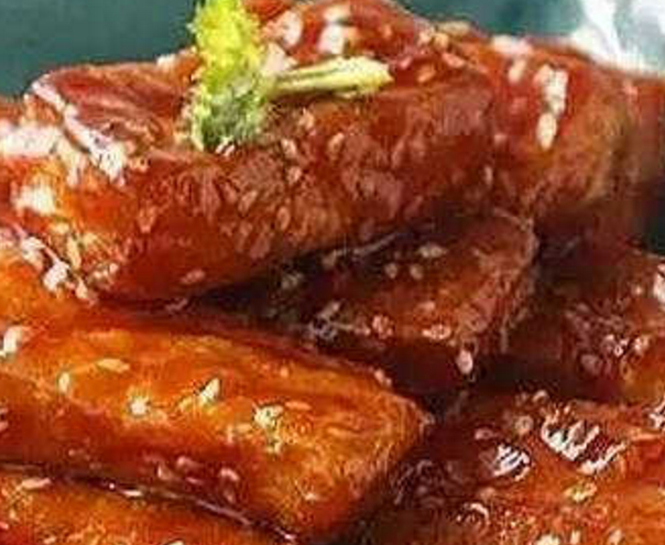 糖醋山藥材料:山藥500克,黑白芝麻適量,生抽適量,番茄醬適量,鹽適量,醋適量,糖適量