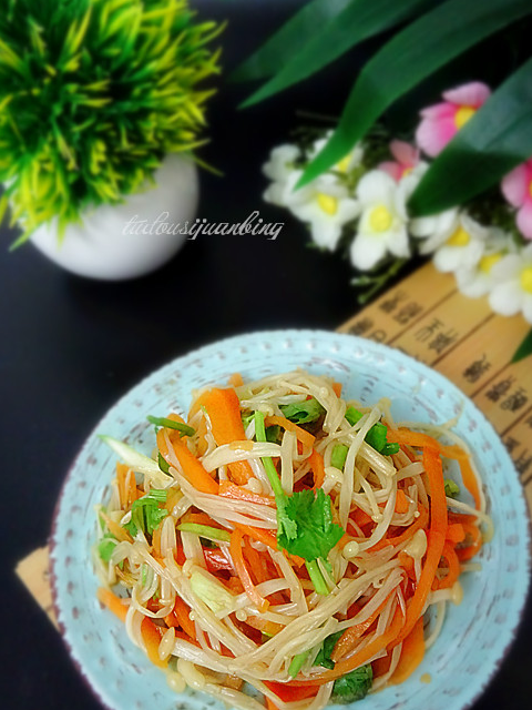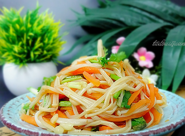 金針菇拌胡蘿卜,兩樣食材都是營養豐富、常見又廉價的蔬菜,很值得推薦的常吃的寶貝。