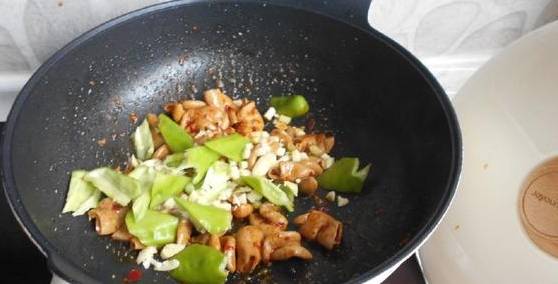 鍋裡放一些油,先加入豆瓣醬炒香,當然你放豆瓣醬的時候也要根據肥腸的,咸味來酌量添加。豆瓣醬爆出香味之後就把焯好的肥腸放進去,大火開始炒。看到都沒將已經均勻的裹在非常上面的時候就可以,加入青椒,假如你是非常喜歡吃辣的話,還可以在裡面放一些小米椒,最後放一點糖提鮮。