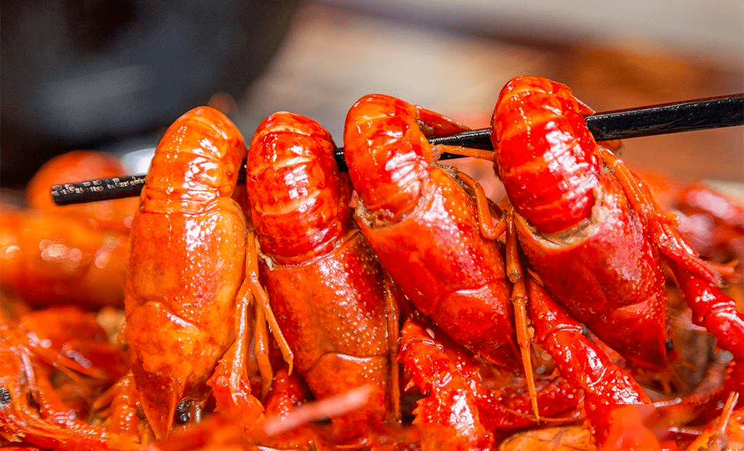 經過油炸爆炒再鹵煮的小龍蝦,泛著油光飄散著銷魂香味,一上桌就吸引全部人的目光