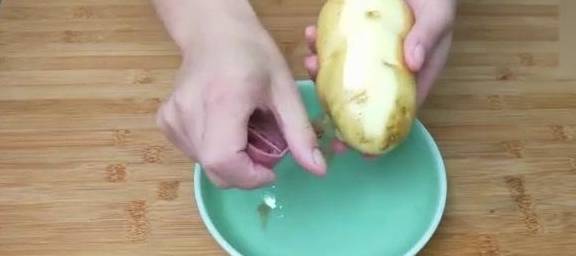 先把土豆的外皮削掉然後切成薄片。