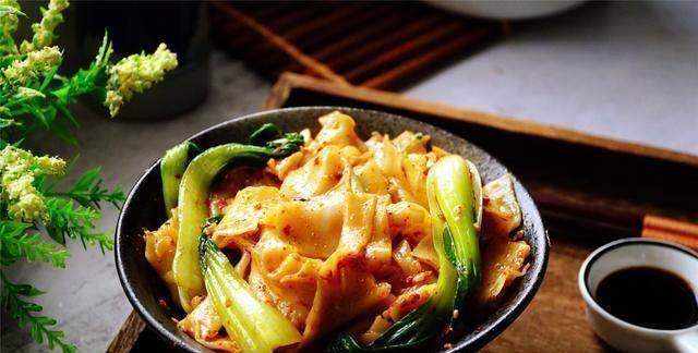 準備食材:一碟辣椒面,一頭大蒜,幾棵新鮮的油菜,一把寬面條。小貼士:油菜是傢常菜,因為富含膳食纖維和植物纖維素,適合便秘患者食用。