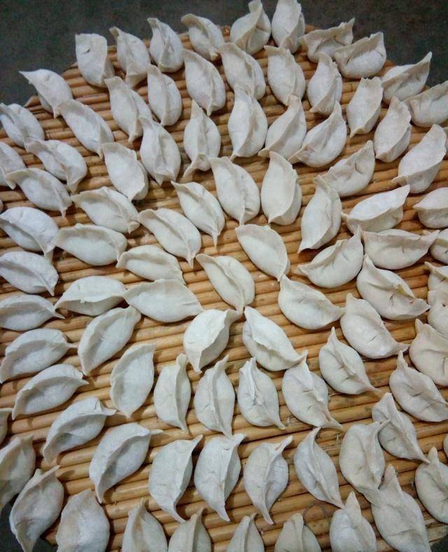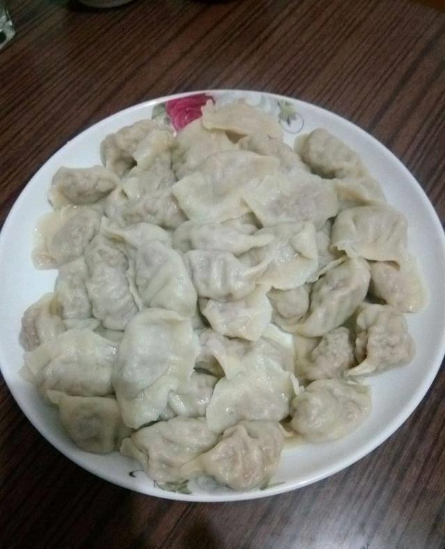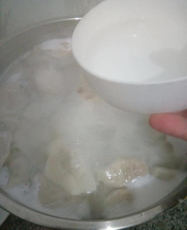 5、等到餃子都包好瞭以後,就在鍋裡面加入水,燒開以後將餃子放到裡面去,用漏勺推幾下,等到鍋裡的水燒開以後,再用勺子推幾下,並且貼著鍋邊加入半碗的涼水。重復三次這樣的步驟就可以出鍋開吃瞭。