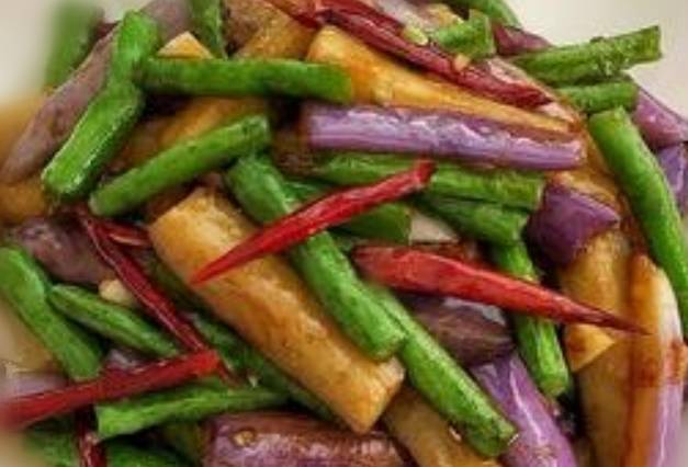 做法:茄子挑新鮮比較嫩的,茄子大小都可以,是茄子就行,特別老的茄子含有多茄堿,對人體有害,不宜多吃,豆角也是挑嫩綠的,茄子清洗幹凈切段再切成條,這種茄子比較細從中間切十字刀就可以,豆角清洗幹凈切段,蒜頭拍碎切末,幹辣椒洗一下切絲,鍋裡倒入適量的食用油,油量要多一點,待油燒熱後,將茄子和豆角下鍋過油,翻動幾下軟瞭就可以撈起來,因為是熱油茄子豆角都很容易熟不宜太久,鍋裡下少許的食用油放蒜末炒香,接著放辣椒絲,辣椒絲是幹的不宜炒太久,久瞭就黑瞭,倒入過好油的茄子和豆角翻炒幾下,倒入少許蠔油和生抽調味,因為耗油和生抽是咸的,不用放鹽瞭