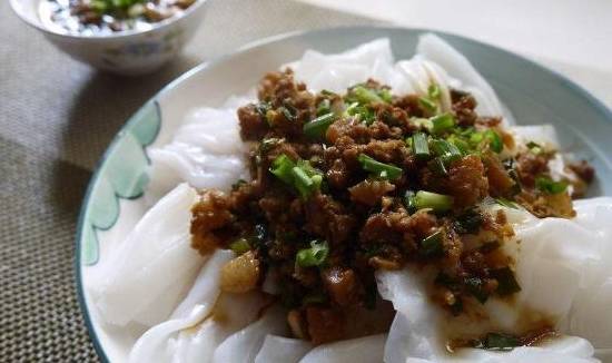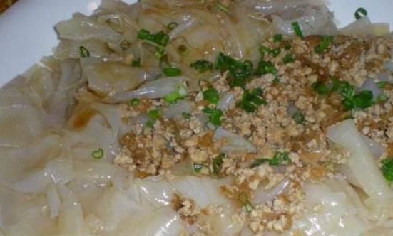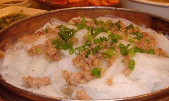 它的具體的制作方法是:首先我們要把豬肉給剁成肉糜,把肉剁好之後,我們要找來一個盤子,然後把陳村粉分散開來擺在這個盤子上面。然後我們再把它放在蒸鍋上去蒸熱來,一般的陳村粉都是熟的,但是因為它都是擺在市場上去賣,所以我們蒸一下的話就會更加的衛生,這樣我們吃起來也會更加的放心。