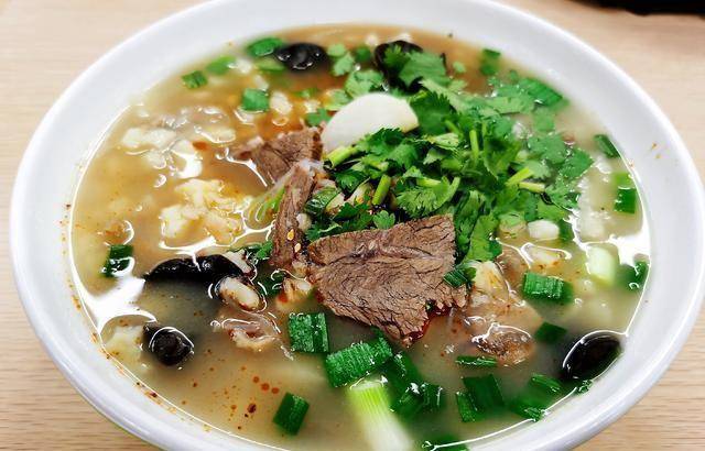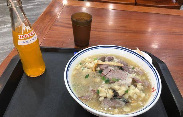 掰完泡饃,大約半個小時,喊服務員過來加牌子排隊,煮好之後服務員就會在大廳喊號,三十八號,我向服務員招瞭招手,一碗熱氣騰騰的羊肉泡饃就端到瞭我的跟前,放點辣椒醬,再吃口糖蒜,真是人間美味!這傢店的特色就是湯香肉爛,口齒留香,可以用兩個字來形容,就是栓口!把你的嘴牢牢的拴住,隻要吃瞭這傢的羊肉泡饃,一整天嘴裡都有羊肉的香味!打個嗝,都是香的!不信可以去嘗嘗哦!