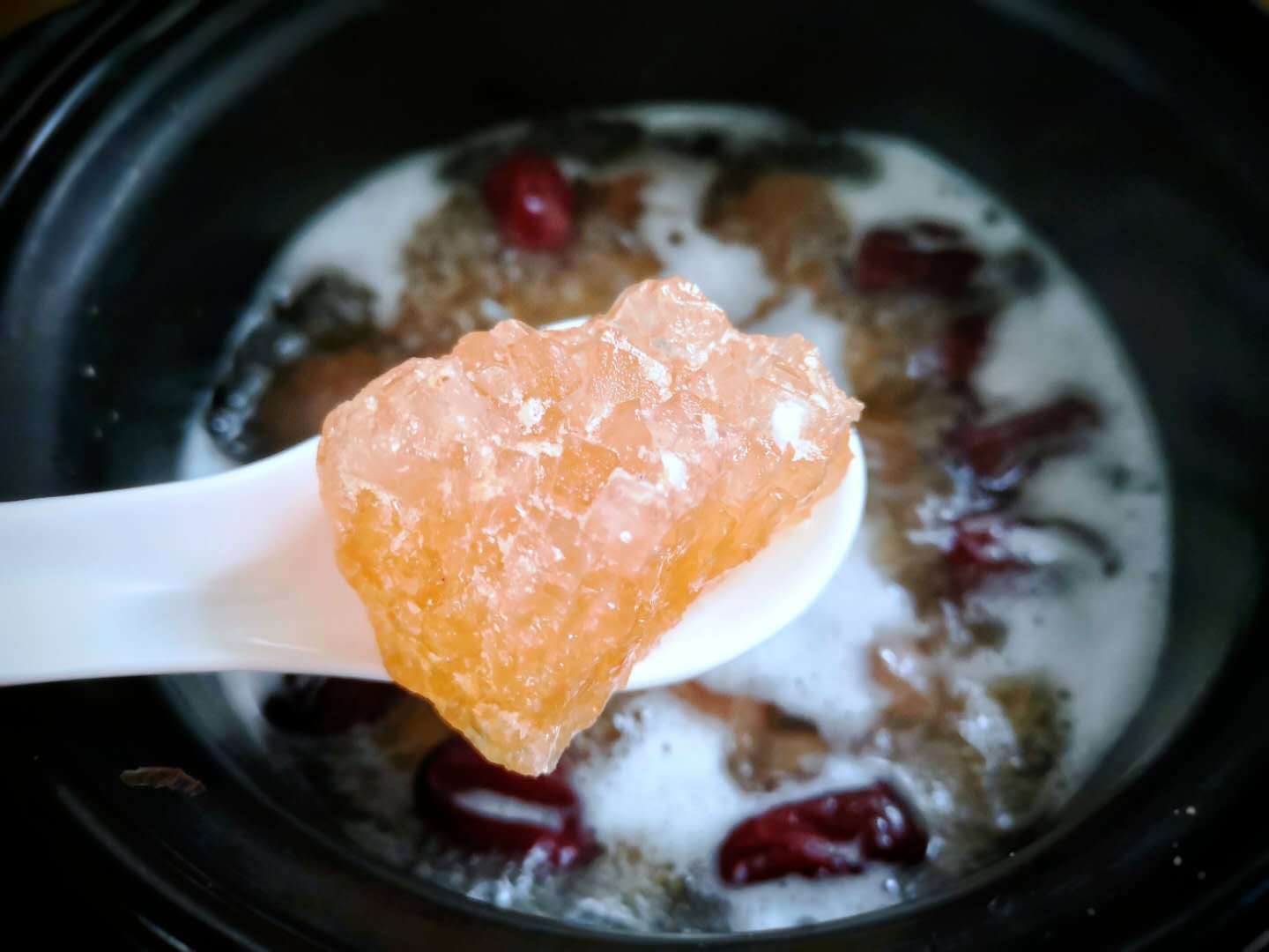 3、大火煮開後調成小火,繼續燉煮20分鐘,放入冰糖後再煮5分鐘即可,滿屋飄香,蓮子清甜軟糯,桂圓幹肉厚甘甜,好喝極瞭。