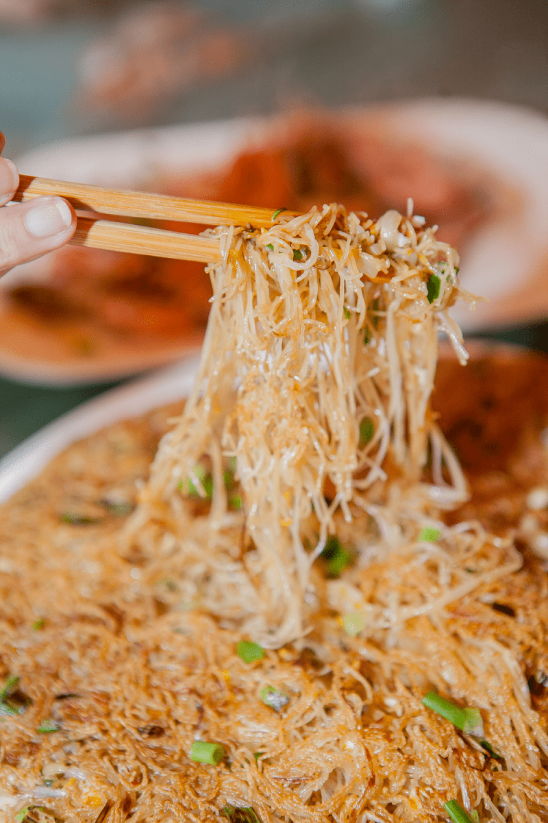 一盤海鮮炒面出鍋,帶著黃金的鍋巴,冒著魷魚的香氣,鮮香而幹爽,令食客意猶未盡,就連小孩也能把小碗裡的炒面一掃而光。