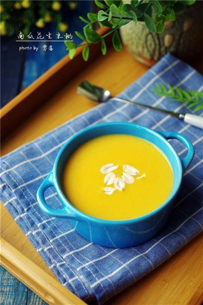 3、將南瓜丁,剩米飯,花生,葡萄幹倒進豆漿機裡;
