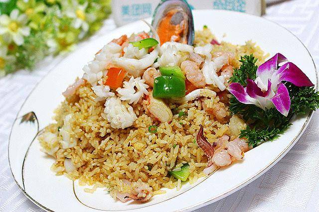 需要準備的食材:米飯、海鮮、雞蛋、胡蘿卜、玉米粒、青豆、蔥薑末、鹽、食用油
