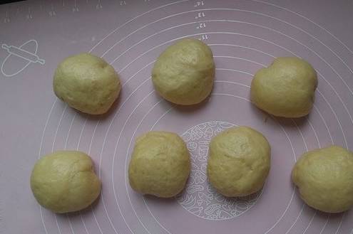 5、發酵好的面團,我們取出排氣揉勻,然後蓋上保鮮膜,靜置20分鐘