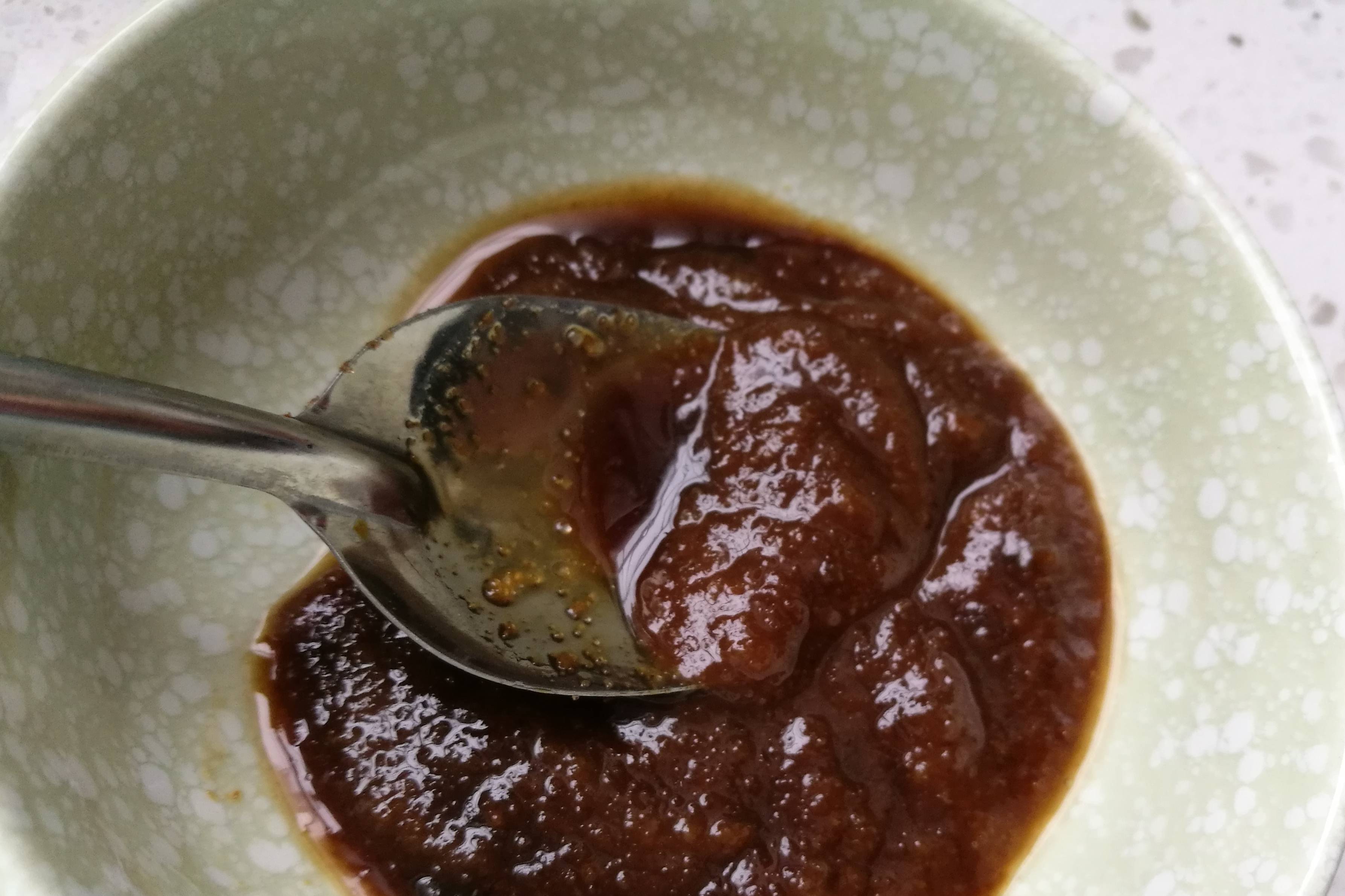 2、這個碗裡就是秘制大醬,嘿嘿,沒有的可以用黃豆醬代替。