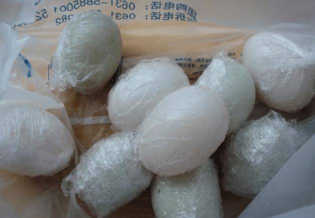 所以我們這裡最重要的一步就是在醃鴨蛋的時候在蛋殼上抹一層白酒,然後撒上鹽。最後,我們還得用塑料薄膜把它包起來。保鮮膜的作用是防止鴨蛋殼上的鹽分掉下來,所以我們醃制出來的咸鴨蛋更均勻,更入味,看起來也很好吃。