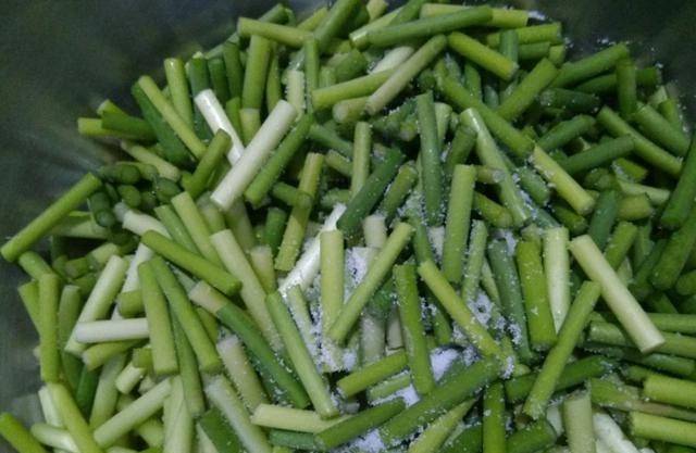1、蒜苔不能直接醃制,需要撒鹽去水,這樣蒜苔吃起來更酥脆有彈性!