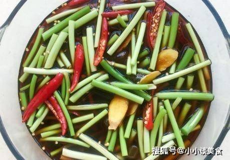 2、醃蒜苔如果入味,不要隻加鹽。調味的方式也很重要。用醬油、糖、醋和各種香料熬制而成的醬汁,讓蒜苔的味道更加濃鬱。配料註意事項蒜苔醃制前,汁液一定要完全冷卻;