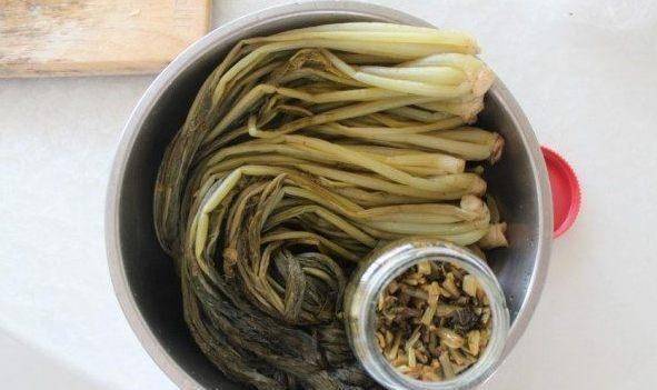 酸菜醃制最重要的一步不是放鹽,而是要讓酸菜不沾一點生水。醃制酸菜前最好準備足量的涼開水。蔬菜用自來水洗凈後,盡量擰幹,然後切成長條,然後放入沸騰的冷水中浸泡,然後加入適量攪拌均勻,這樣就可以殺菌瞭。