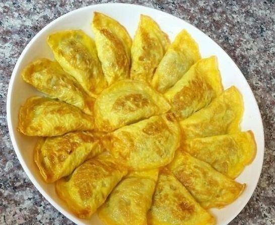 雞蛋餃子是一道地地道道的傢常菜,桌上擺著金條。它是用雞蛋液做成的餃子,外面裹著肉餡。味道鮮美細膩。