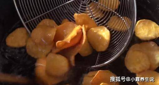 炸至金黃,薯片邊緣可以卷起,撈出控油。