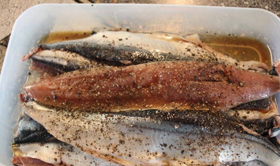 Step2.將拔完刺的魚片洗凈擦幹,再用清酒和黑胡椒醃浸一下。