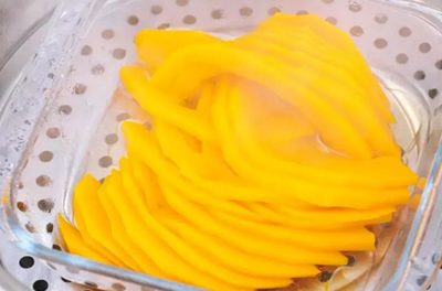 將南瓜放到清水裡面清洗幹凈,瀝幹水分放到案板上。用刮皮刀刮去外皮,切成小片,放到碗中備用。蒸鍋裡面放入適量的清水燒開,放入南瓜片蒸15分鐘左右,蒸至完全熟透,筷子可以輕松戳進去即可。