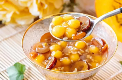 食材準備:南瓜100克、糯米粉100克、紅棗、枸杞、酒釀20克、紅糖10克、生粉3克、清水5克、桂花幹。
