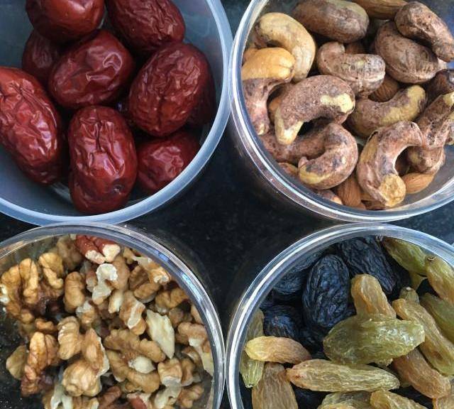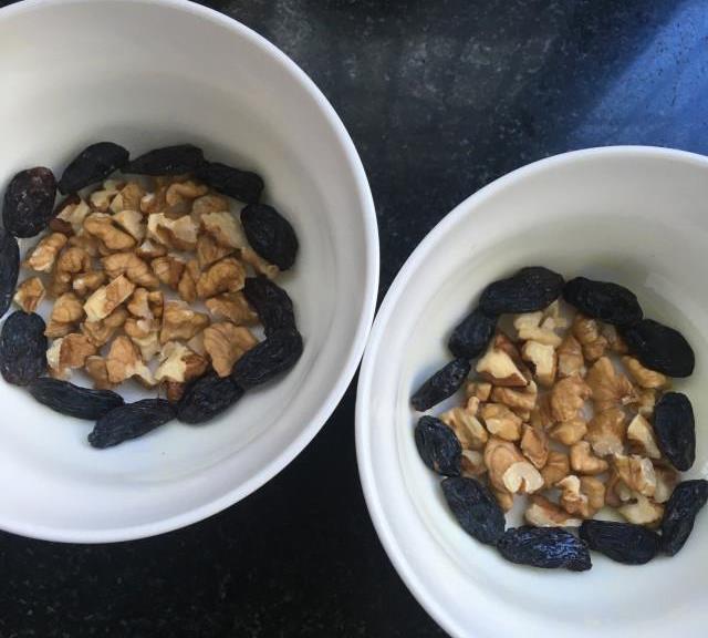 第2步、紅棗,核桃仁,腰果,葡萄幹,黑加侖準備就緒。