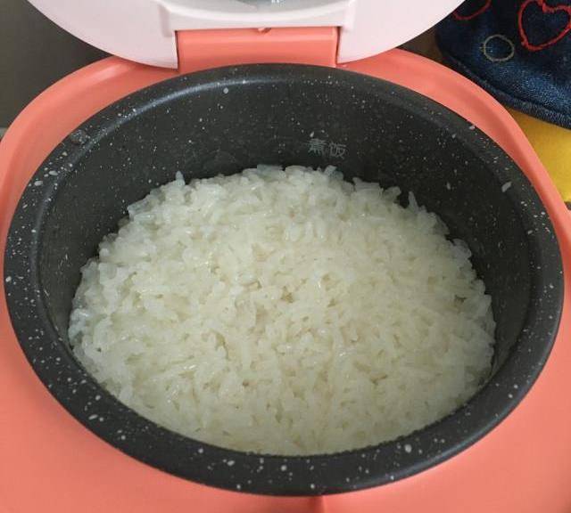 第1步、糯米提前浸泡四個小時後放入電飯煲中,加適量水煮熟。