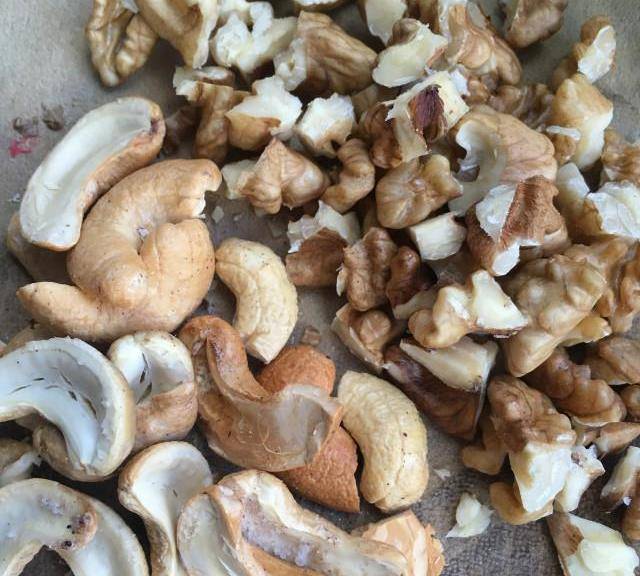 第6步、碗中放入核桃碎,沿邊放入黑加鹽。