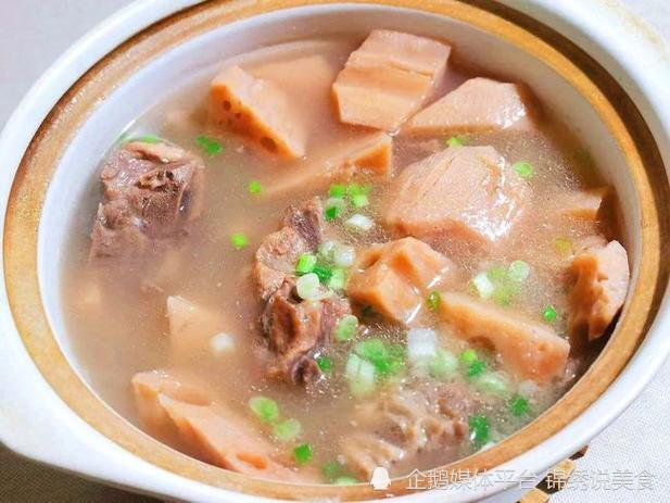 2、蓮藕去皮洗幹凈,切成大塊。起鍋燒油,放入薑片和排骨,小火煎至顏色焦黃,倒入足夠多的開水,大火煮開後小火燉1個小時,放入蓮藕塊和枸杞、紅棗,加入適量食鹽,繼續燉半個小時,撒上胡椒粉、蔥花即可出鍋。