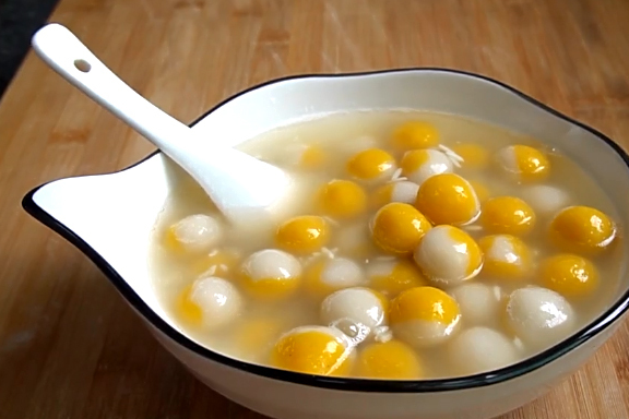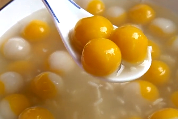 6.大傢可以將煮熟的南瓜丸子放在冰箱裡冷藏1個小時,再取出來吃,清爽可口Q彈,冰涼解暑。