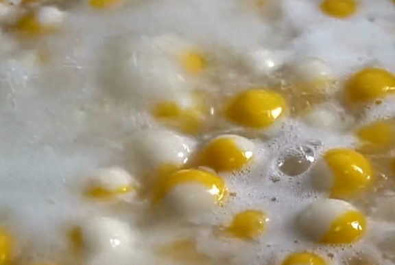 4.南瓜面團下入鍋中的時候要輕輕地慢慢地將它翻動一下,防止粘連在一起,全程開中小火。