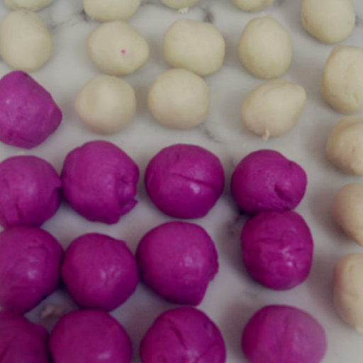 第4步、將油皮分成20g的小面團,油酥分成10g的小團,搓圓