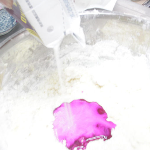 第2步、再來制作油皮部分,低筋面粉和色拉油,火龍果汁放一起攪拌勻,揉成光滑的面團