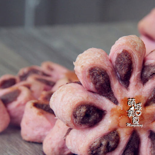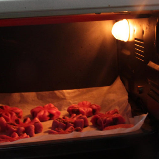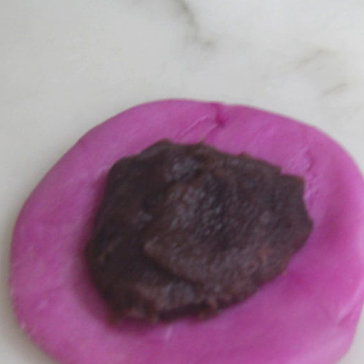 原料:低筋面粉、色拉油、火龍果汁、低筋面粉、白豬油、紅豆沙。