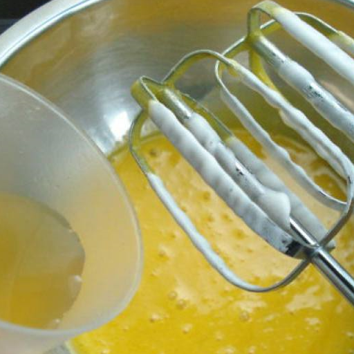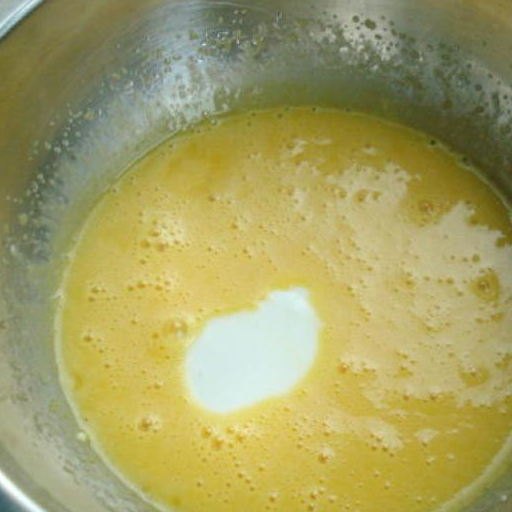 第7步、取3分之1蛋清,放入蛋黃糊裡,拌勻。