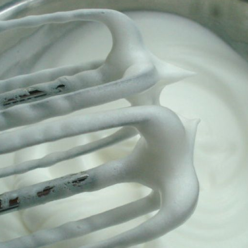 第2步、蛋清加白醋、鹽,分3次加50克糖,打發。