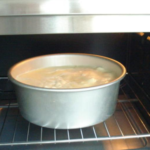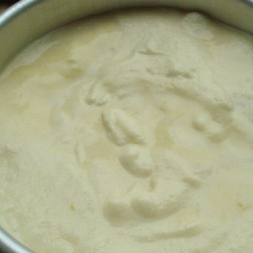 第10步、倒入8寸戚風模具,震去大氣泡。