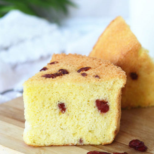 加瞭蔓越莓幹的酸奶戚風,蛋糕的松軟搭配蔓越莓的酸甜,口感酸甜不膩,非常適合夏天食用。