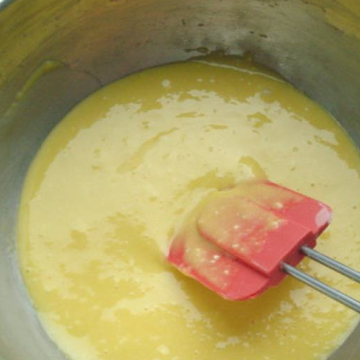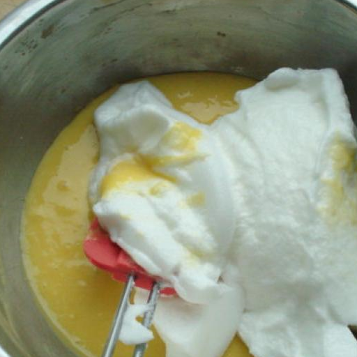 第8步、拌勻的面糊倒入剩下的蛋清中。