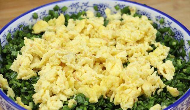 韭菜控好水分以後去掉根部,然後把韭菜切碎,切好,收入大碗裡。接著往裡面加入少許小蘇打,用筷子攪勻。這樣可以使韭菜不變色,攪勻以後,往裡面加入適量的熟油。提前加入食用油,這樣可以延緩韭菜出水,用筷子充分的攪勻。