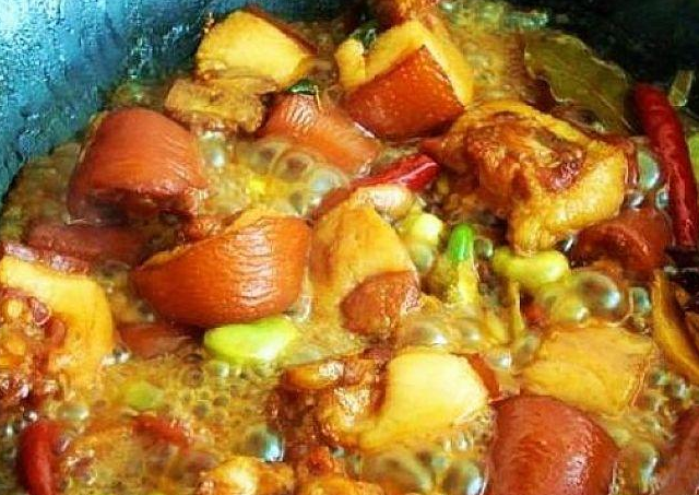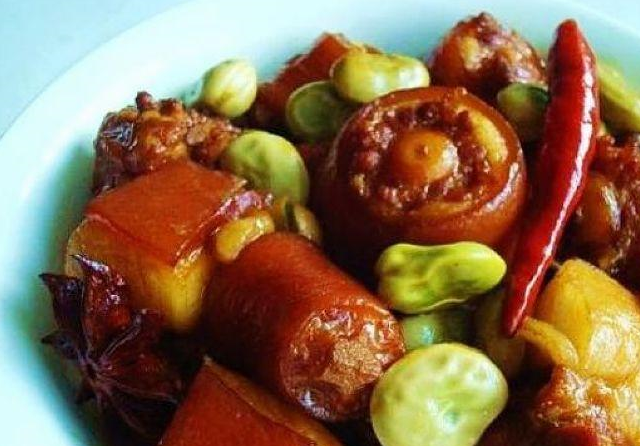 具體做法;把豬尾切大小一樣的段,下到開水裡焯兩分鐘左右撈起,把蠶豆去殼,把油燒到5成熱,加白糖小火炒到變咖啡色起小炮泡,加豬尾翻炒均勻上色,加料酒、蔥薑、八角、香葉、少許醬油繼續翻炒出香味,加清水蓋過豬尾大火燒開,加蓋轉小火燒40分鐘以上,直接燒到豬尾熟爛,加蠶豆、鹽,加蓋再燒10分鐘,加雞精翻炒均勻即可出鍋,記住蠶豆一定要燒熟爛,要不易中毒。