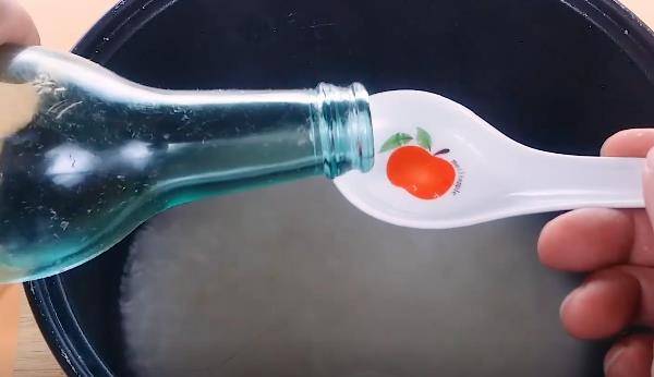 這裡加水我們不要直接加冷水,可以加溫水,這樣可以縮短煮飯的時間,節省時間和電費,還能最大程度保留大米的營養成分,往水中加入幾滴白醋,白醋可以增加米飯的松軟度,再加入一小勺豬油,豬油可以增加米飯的香甜度和松軟度,米飯松軟香甜更好吃。