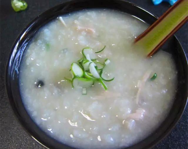 5、煮一鍋白粥,放入薑絲,和一半蔥花,放入鹽、雞精調味。