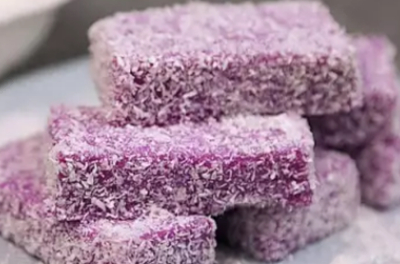【椰蓉紫薯糕】食材:紫薯200克、酸奶120克、牛奶500克、玉米淀粉80克、白砂糖40克、椰蓉適量。