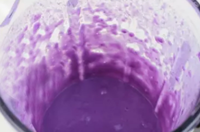 將紫薯清洗幹凈,然後放入蒸鍋中蒸熟,蒸到可以用筷子輕松刺穿。紫薯剝去外皮,放入料理機中,倒入250克牛奶,開始攪打。攪打至紫薯糊細膩,沒有顆粒。